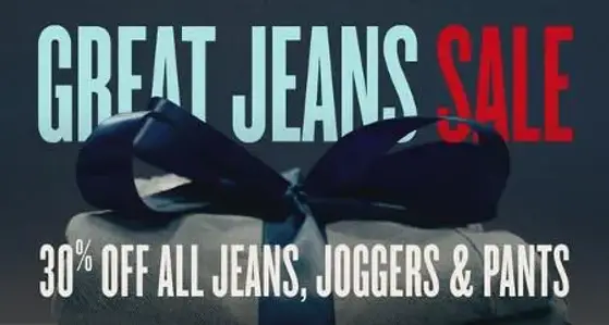 The Great Jeans Sale is here! Shop in store and get 30% off all jeans, joggers & pants.
