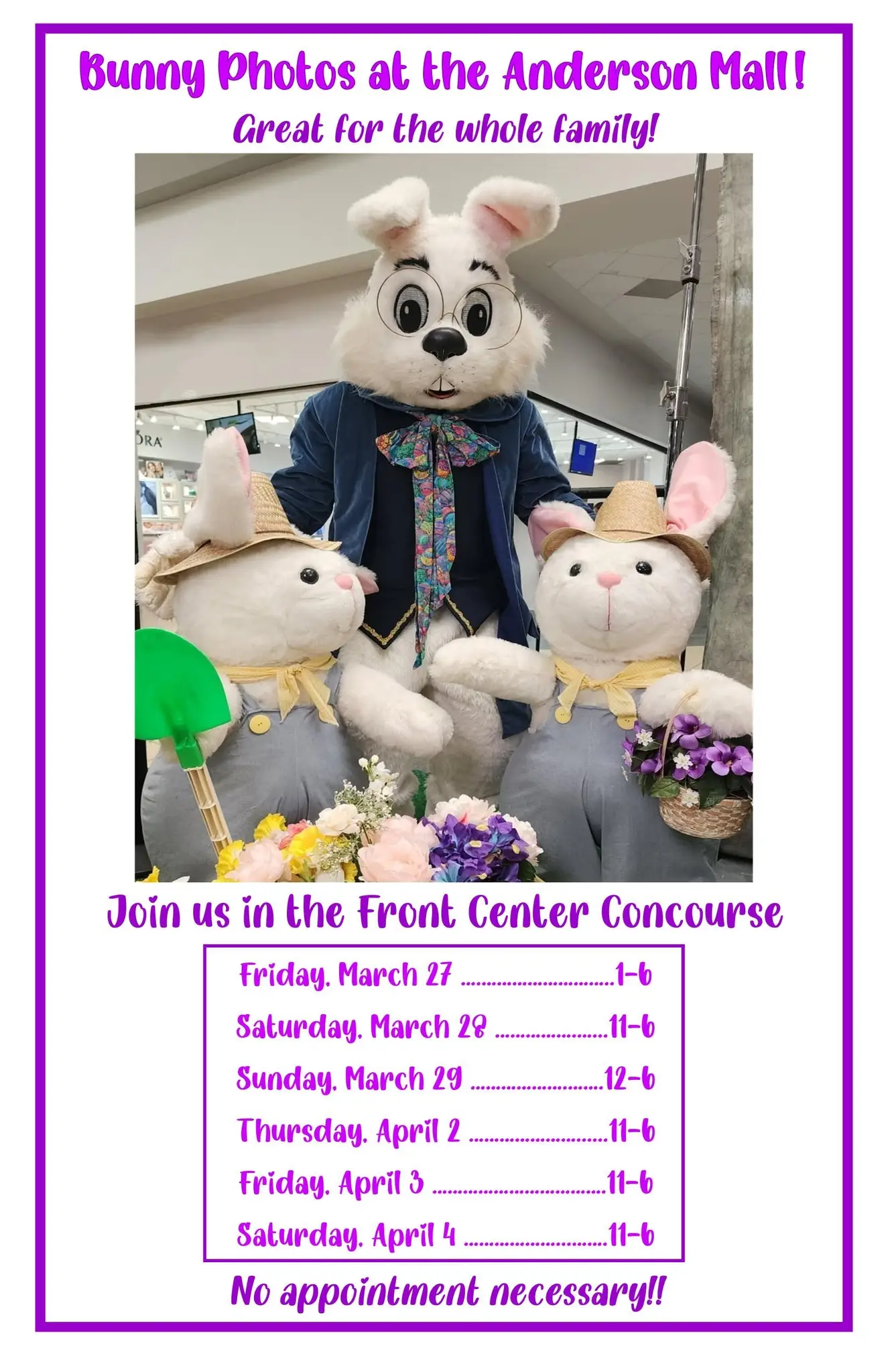 Bring the family, dress in your spring best, and stop by for a festive photo opportunity with the Easter Bunny.